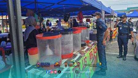 Sebanyak 103 peniaga yang mengendalikan jualan makanan dan minuman melibatkan 130 plot jualan telah diperiksa. Hasil pemeriksaan mendapati beberapa kesalahan dikenal pasti, antaranya tidak memakai kasut yang bersesuaian, memakai aksesori seperti jam tangan dan gelang, serta gagal mempamerkan Sijil Pengendali Makanan semasa pemeriksaan dijalankan.